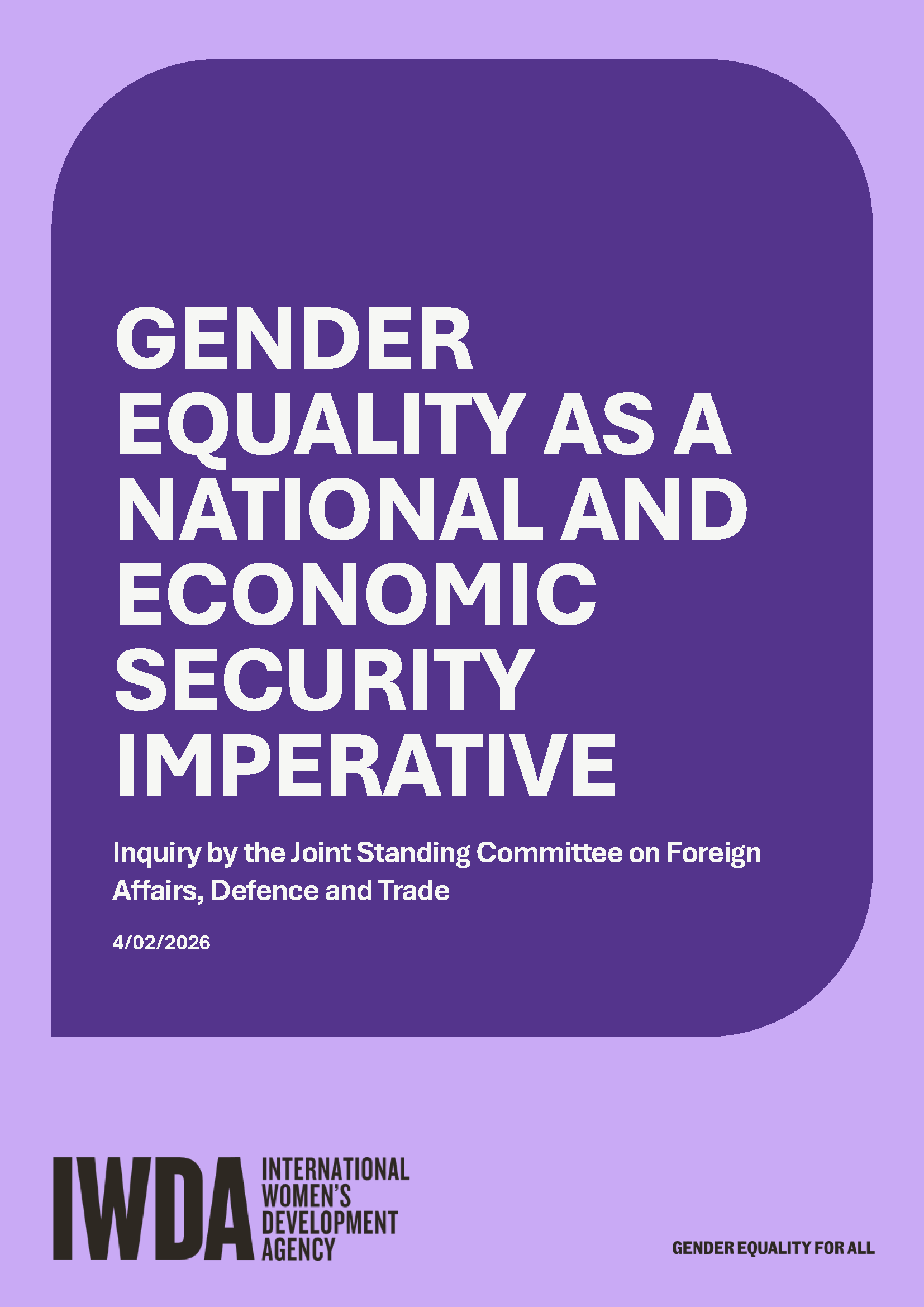 Submission to inquiry into gender equality as a national security and economic security imperative