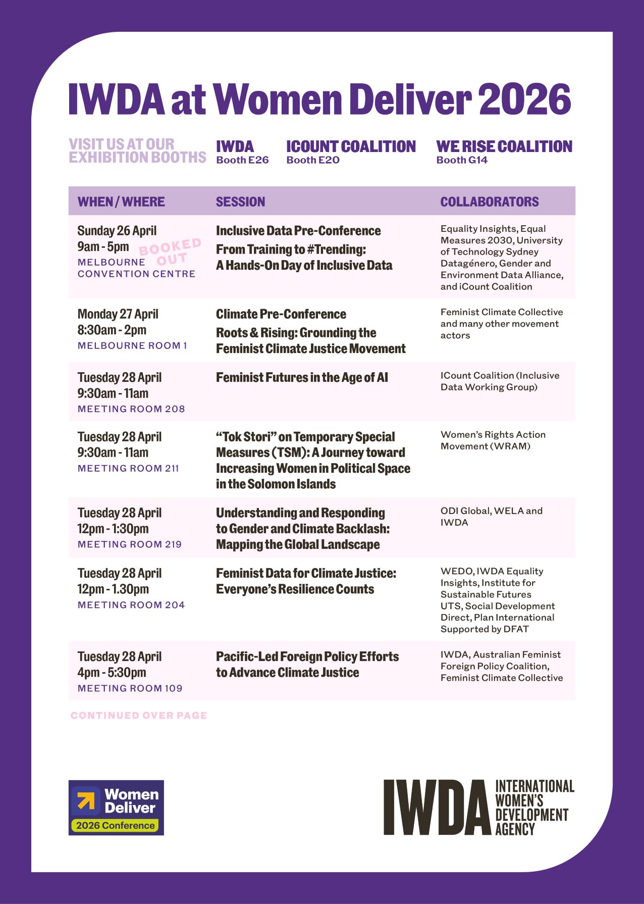 Across the week, IWDA will contribute to conversations on feminist partnerships, Pacific leadership and systems change.